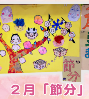 毎回、作成する前に「○月といったら何が思い浮かぶかなぁ」と皆さんで意見を出し合ってテーマを決めて、ご利用者様お一人お一人が得意な作業を分担しながら一つの作品を作り上げています。